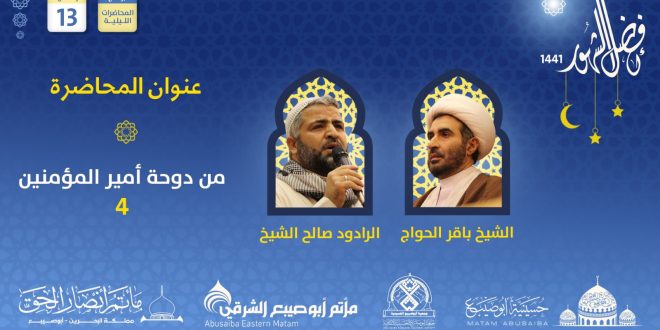 الشيخ باقر الحواج – من دوحة أمير المؤمنين (4) – ليلة 13 رمضان – 1441 هـ 6 مايو، 2020 783 زيارة شاركها tweet 2020-05-06