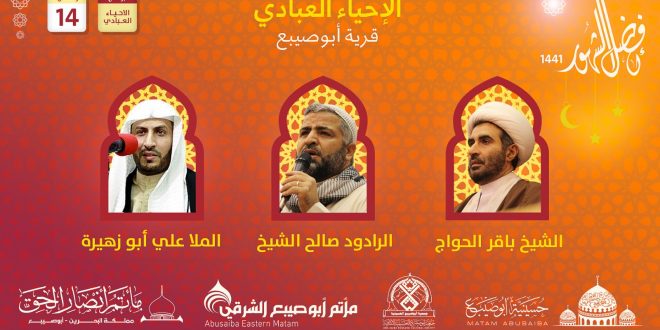 الشيخ باقر الحواج والرادود صالح الشيخ والملا علي ابوزهيرة – الاحياء العبادي – ليلة 14 رمضان- 1441 هـ 9 مايو، 2020 897 زيارة شاركها tweet 2020-05-09