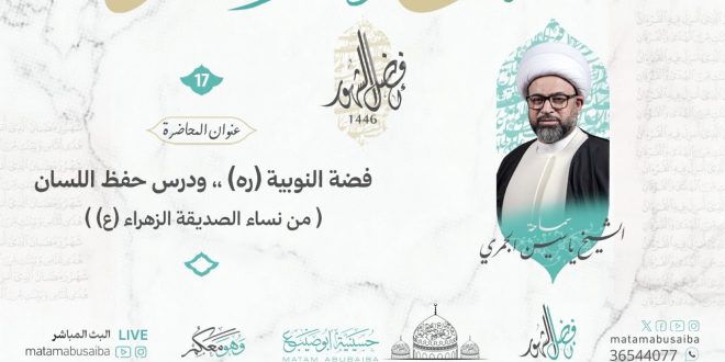 سماحة الشيخ ياسين الجمري | فضة النوبية (ره) ،، ودرس حفظ اللسان | ليلة 17 رمضان 1446هـ 24 مارس، 2025 149 زيارة شاركها tweet 2025-03-24