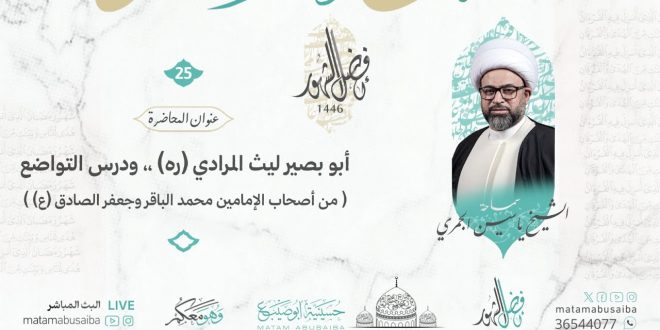 الشيخ ياسين الجمري | أبو بصير ليث المرادي (ره) ،، ودرس التواضع | ليلة 25 رمضان 1446هـ 28 مارس، 2025 222 زيارة شاركها tweet 2025-03-28