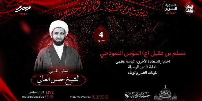 الشيخ حسن العالي | مسلم بن عقيل (عليه السلام) المؤمن النموذجي | ليلة 4 محرم 1447 هـ 30 يونيو، 2025 144 زيارة شاركها tweet 2025-06-30