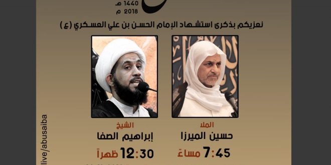 الملا حسين الميرزا – ذكرى استشهاد الإمام الحسن العسكري (ع) – ليلة 8 ربيع الأول 1440 هـ 15 نوفمبر، 2018 1,212 زيارة شاركها tweet 2018-11-15